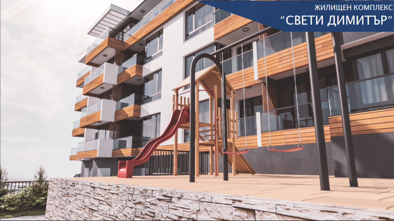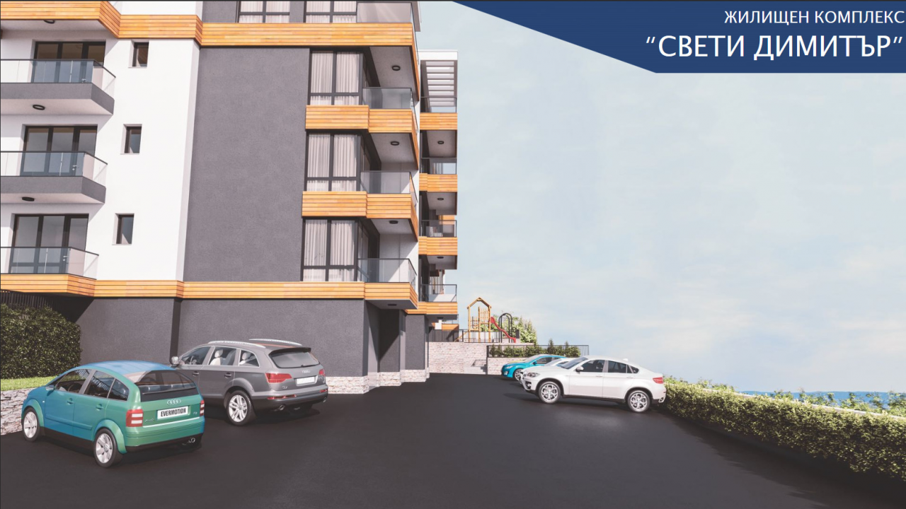 Степен на завършване: Фасада - топлоизолация, мин.мазилка, PVC дограма -висок клас; цвят- златен дъб