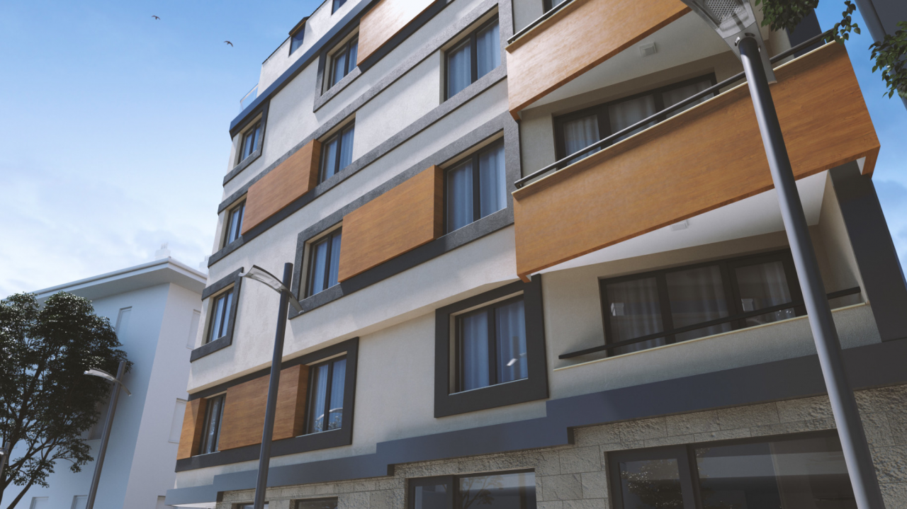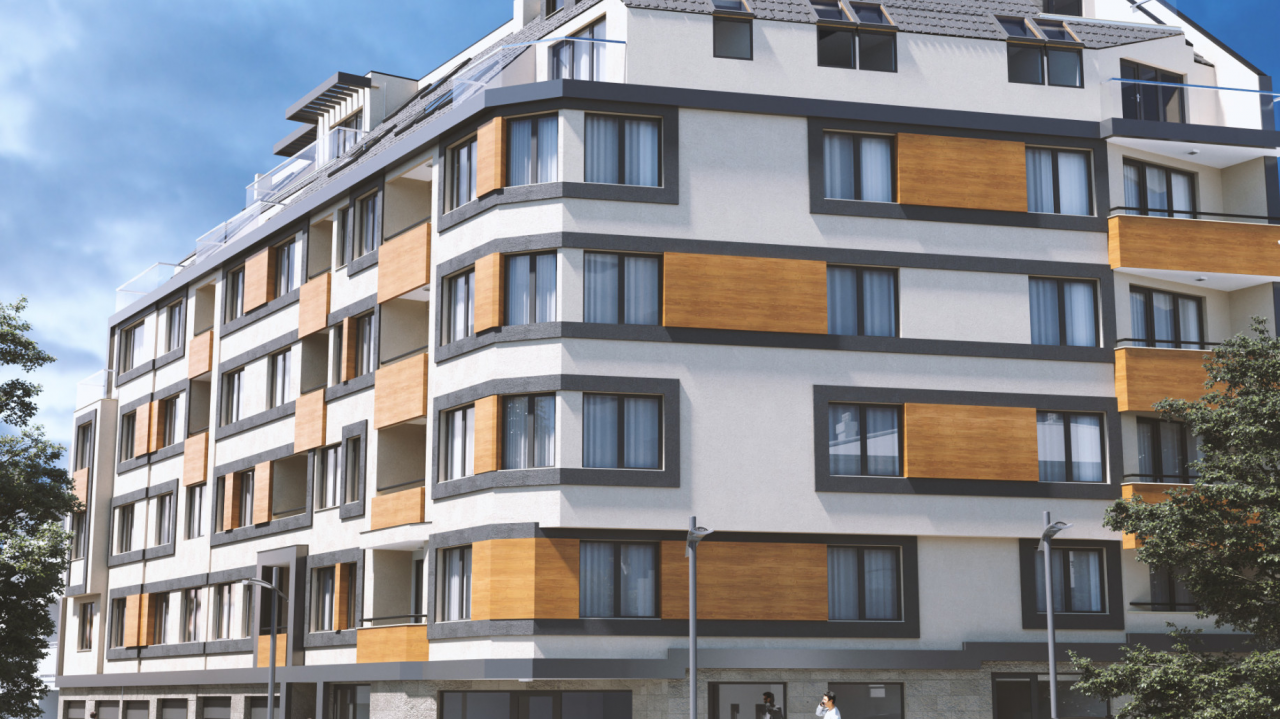 Степен на завършване: Фасада - топлоизолация, мин.мазилка, PVC дограма -висок клас; цвят- златен дъб